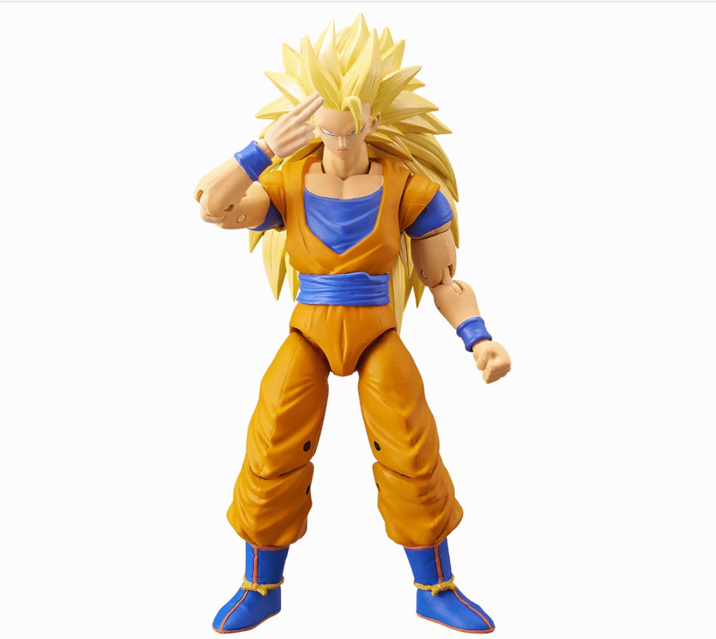 La figura de Goku Super Saiyan 3 de la colección Dragon Stars de Bandai captura a la perfección la intensidad y el poder de una de las transformaciones más icónicas del anime. Con 17 cm de altura, articulaciones móviles y accesorios intercambiables, es ideal tanto para jugar como para exhibir en tu colección. El diseño está cuidadosamente inspirado en la serie Dragon Ball Z, permitiéndote recrear las batallas más legendarias.